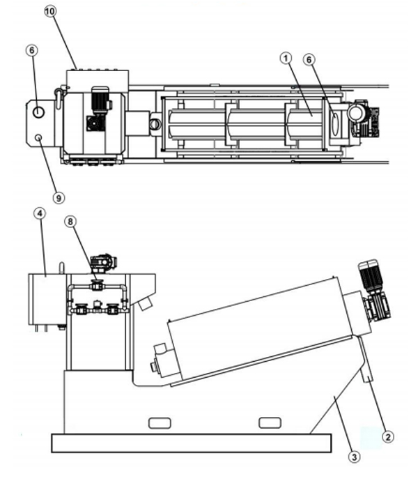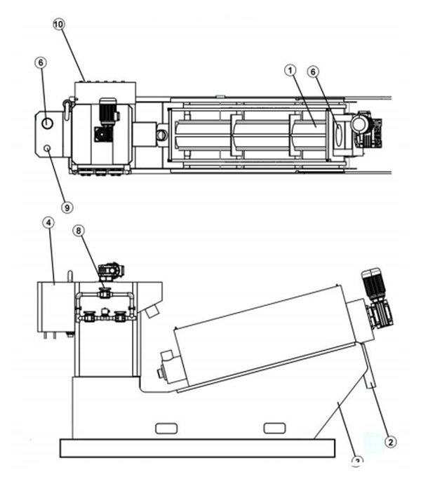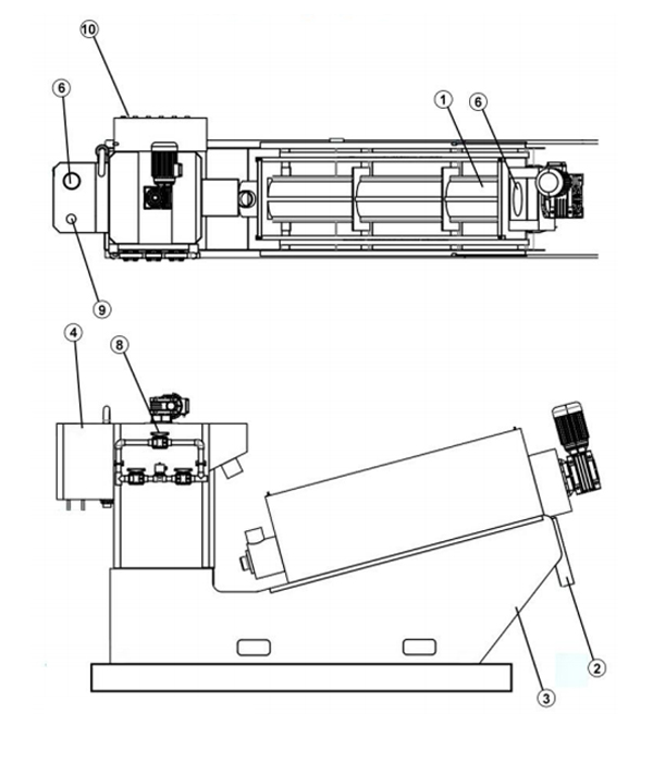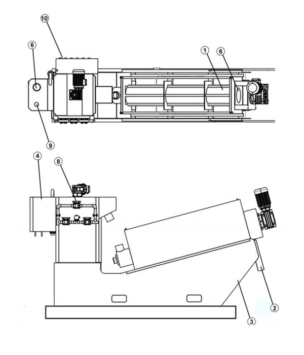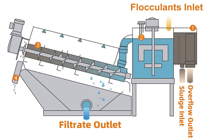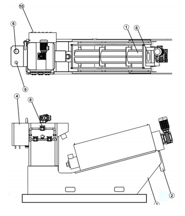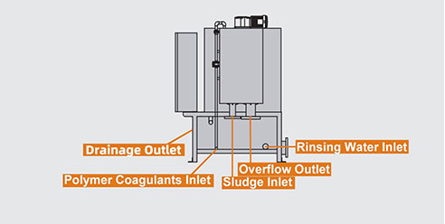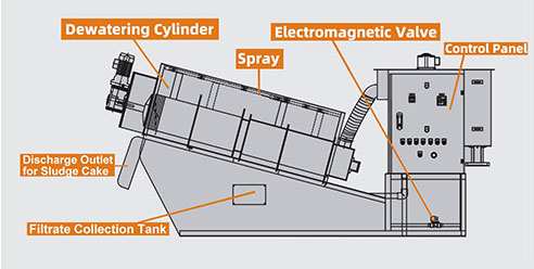 Dewatering Cylinder กากตะกอนปรับสภาพจะหนาขึ้นใน โซนหนาของกระบอกสูบและความดันภายใน เพิ่มขึ้นที่บริเวณแยกน้ำออกช่วยให้ตะกอนน้ำเสียดีขึ้น