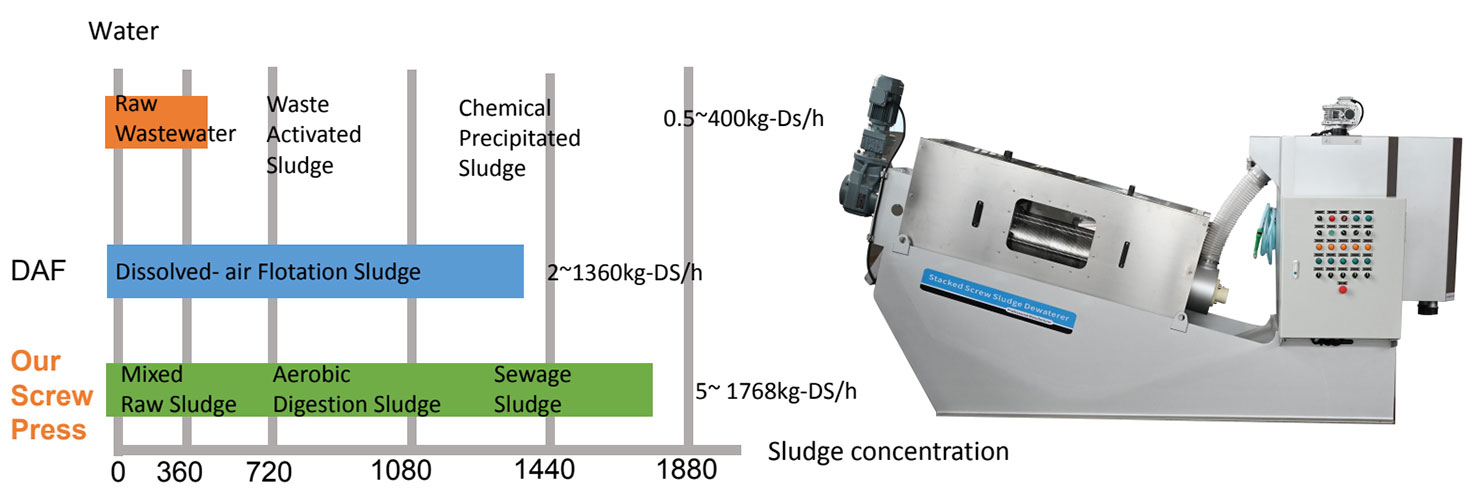 Screw Press ออกแบบพิเศษมีหลากหลายประเภท ความจุครอบคลุมตั้งแต่ 0.5Kg-DS/h ถึง 1320- 1768Kg-DS/h